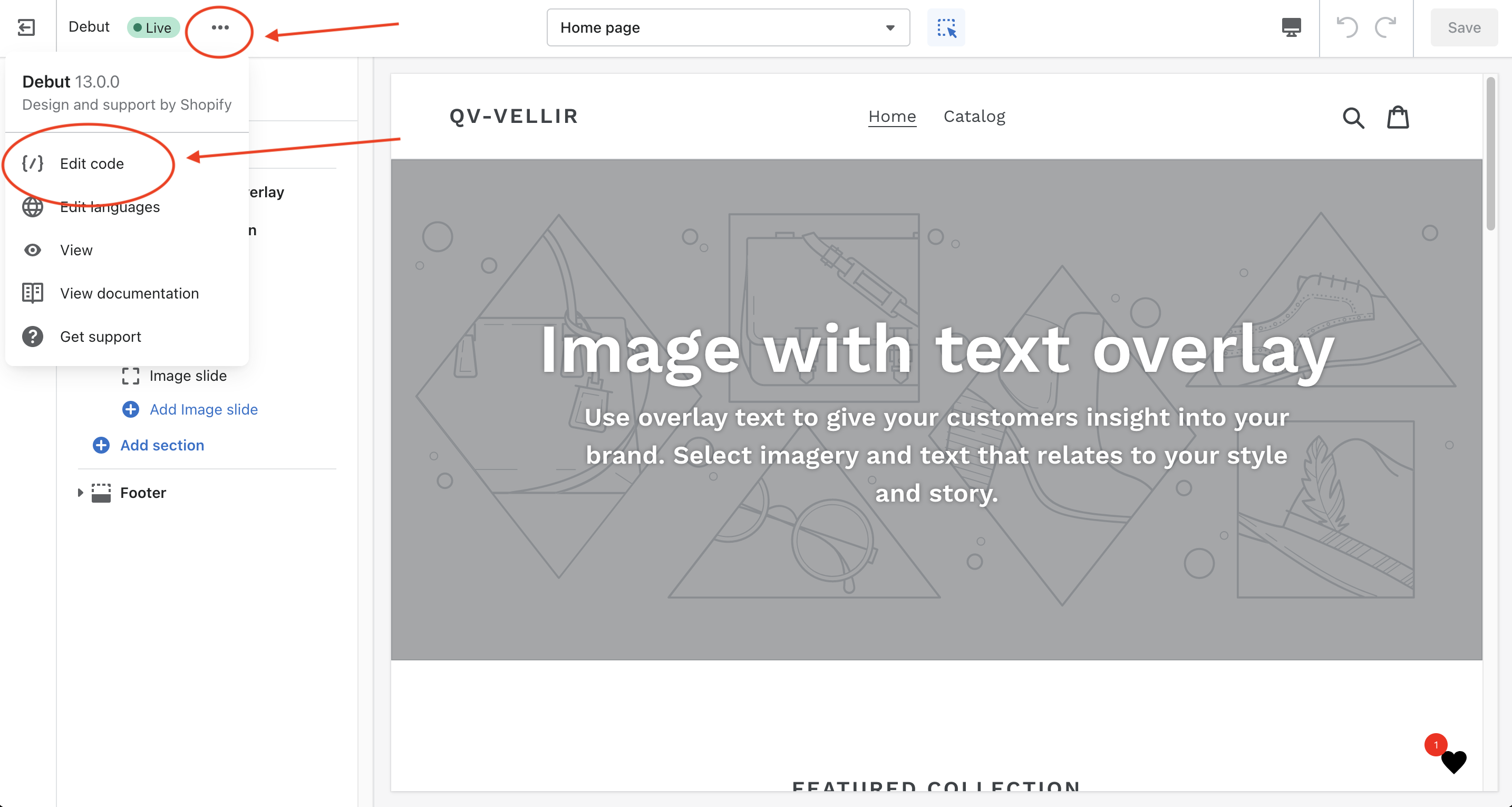 Step 1 - Navigate to the theme's code editor