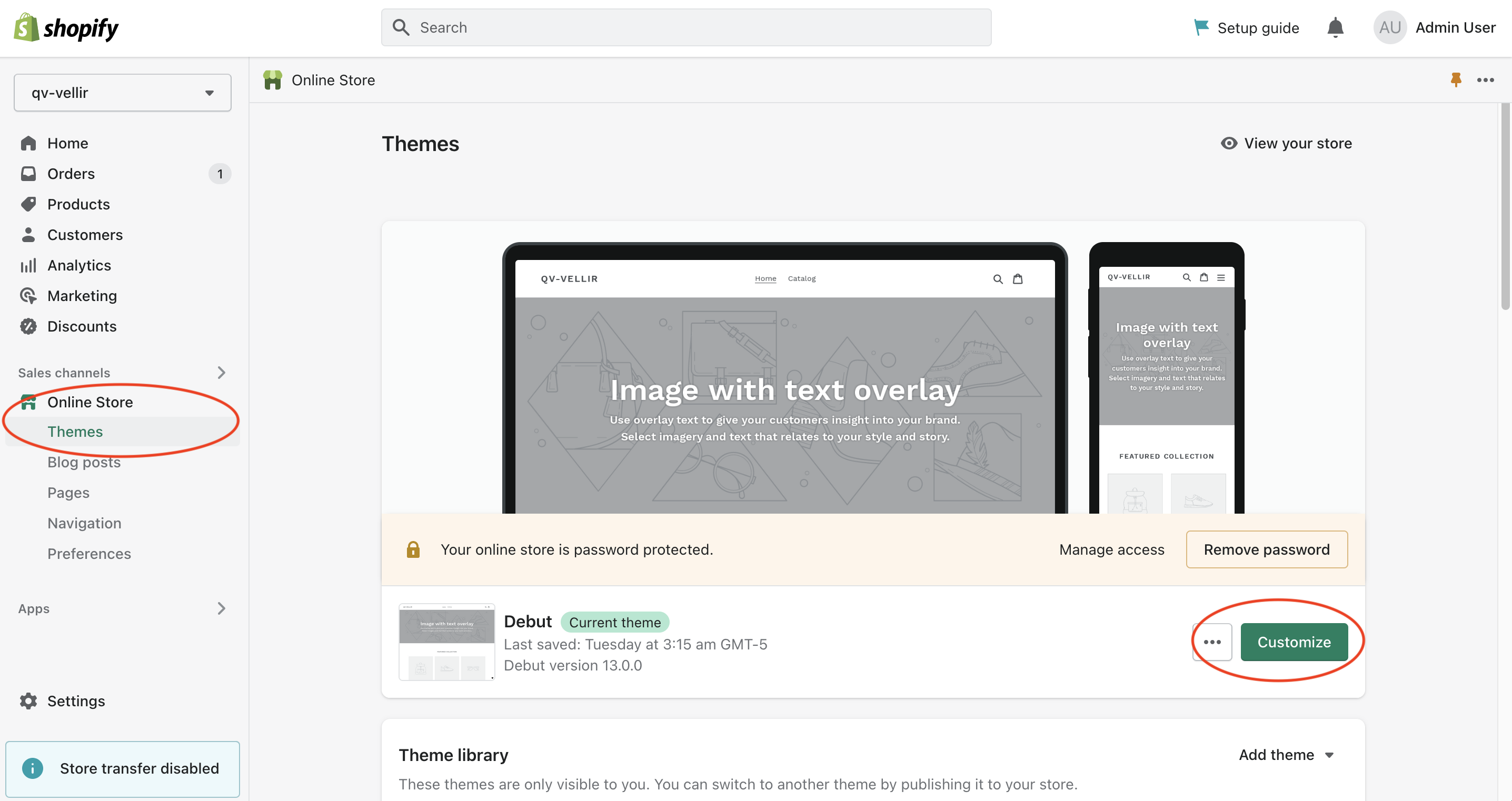 Before making any changes it's recommended to either duplicate the live theme or pick another theme from the library. This way you can minimize the risk of impacting your live store if something goes wrong. From your Shopify's admin page, click on “Online Store” -> “Themes” and click on “...” next to “Customize” and select “Duplicate”. Once you've done that click on “Customize”.