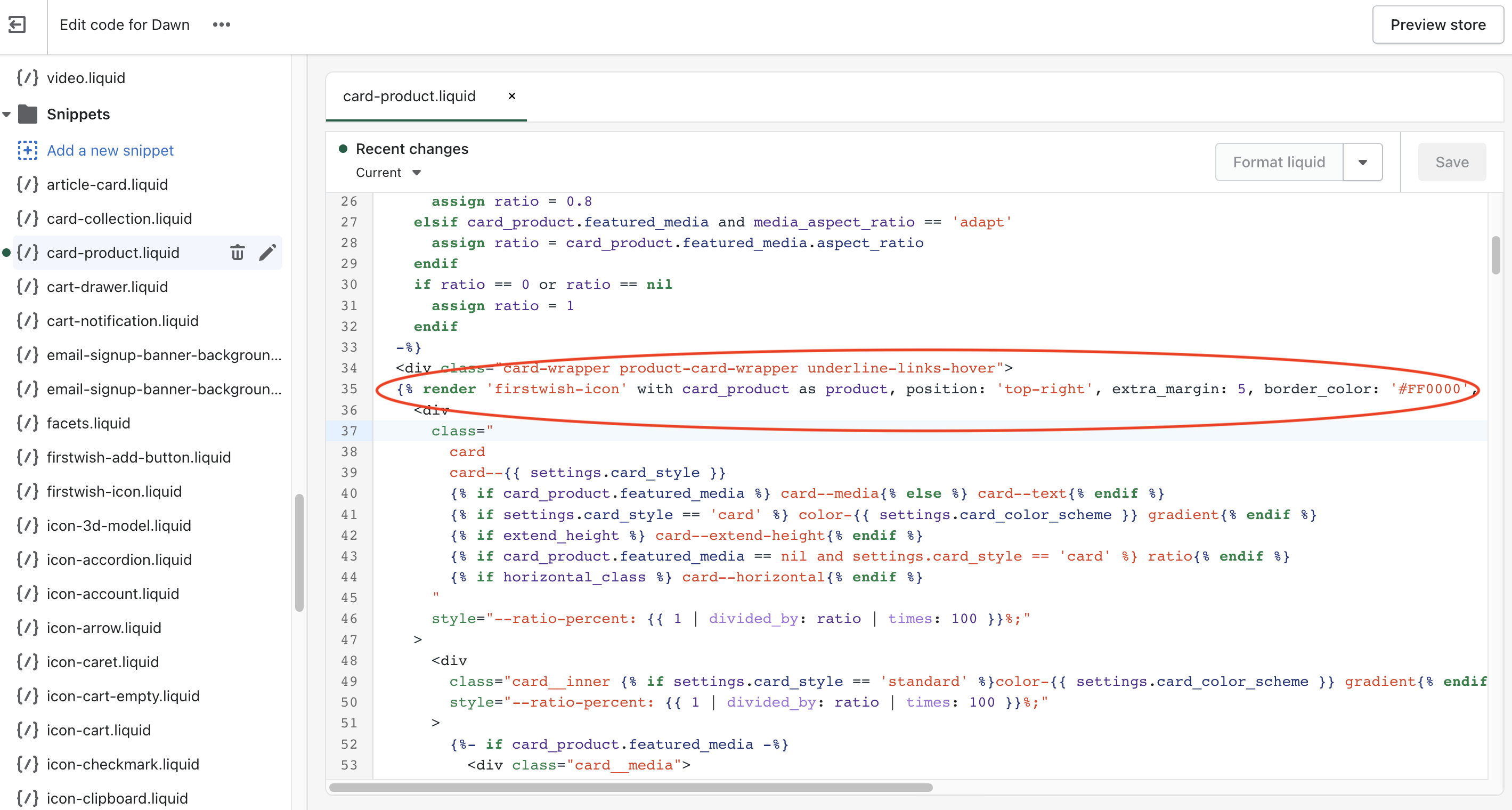{% render 'firstwish-icon' with product_card_product as product, position: 'top-right', extra_margin: 10, border_color: '#000000', color_active: '#000000', color_inactive: '#FFFFFF', size: 24 %}